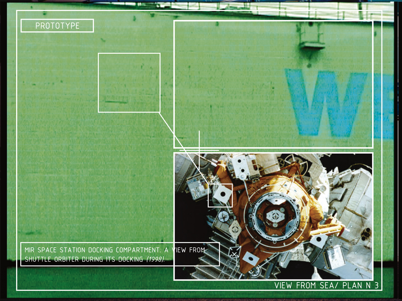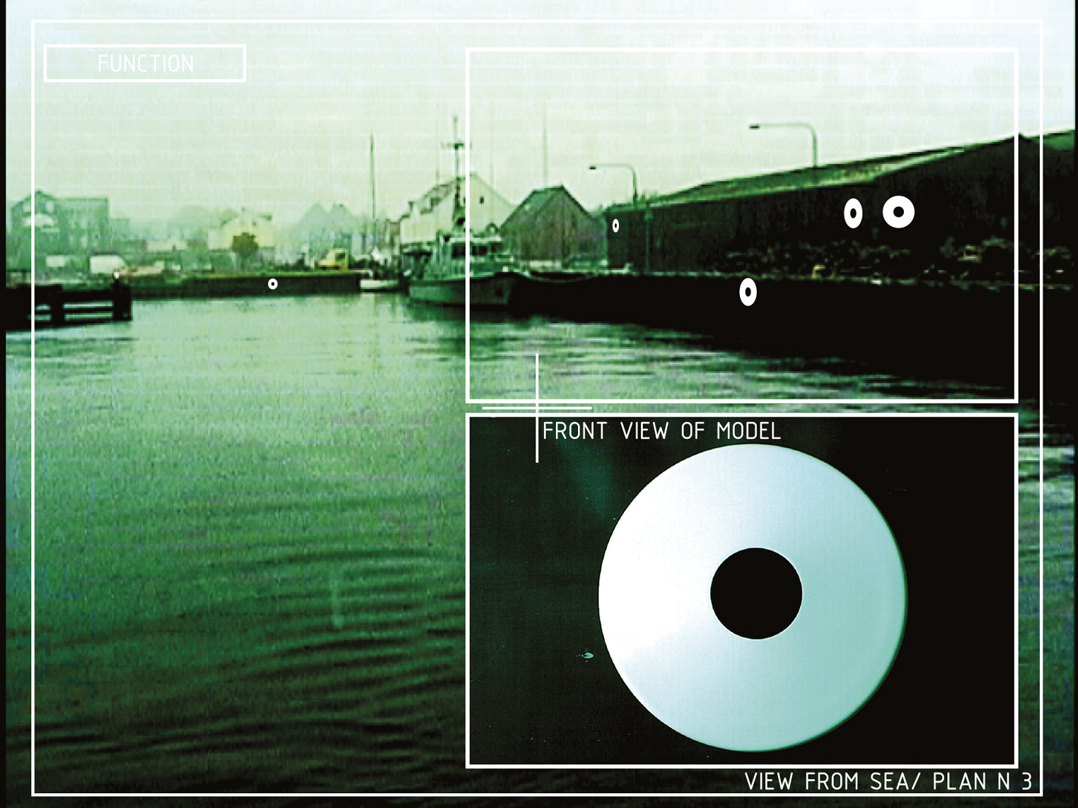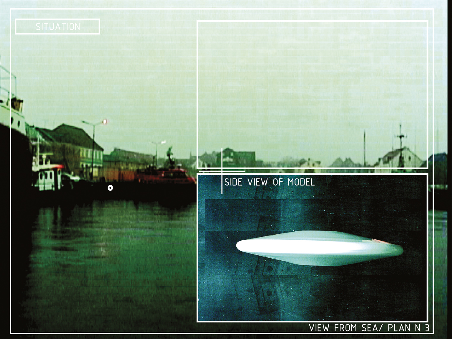 Frederisijos uosto pertvarkymo projekte buvo pasiūlyta radikaliai pakeisti žvilgsnio tašką – į teritoriją žvelgti ne iš žmogaus mastelio, o tarsi iš kosminio palydovo. Uosto infrastruktūra čia buvo žymima paprastais grafiniais ženklais: juodais taškais baltame fone, primenančiais indikatorius, naudojamus erdvėlaiviams atskirti nuo kitų kosminių kūnų.
