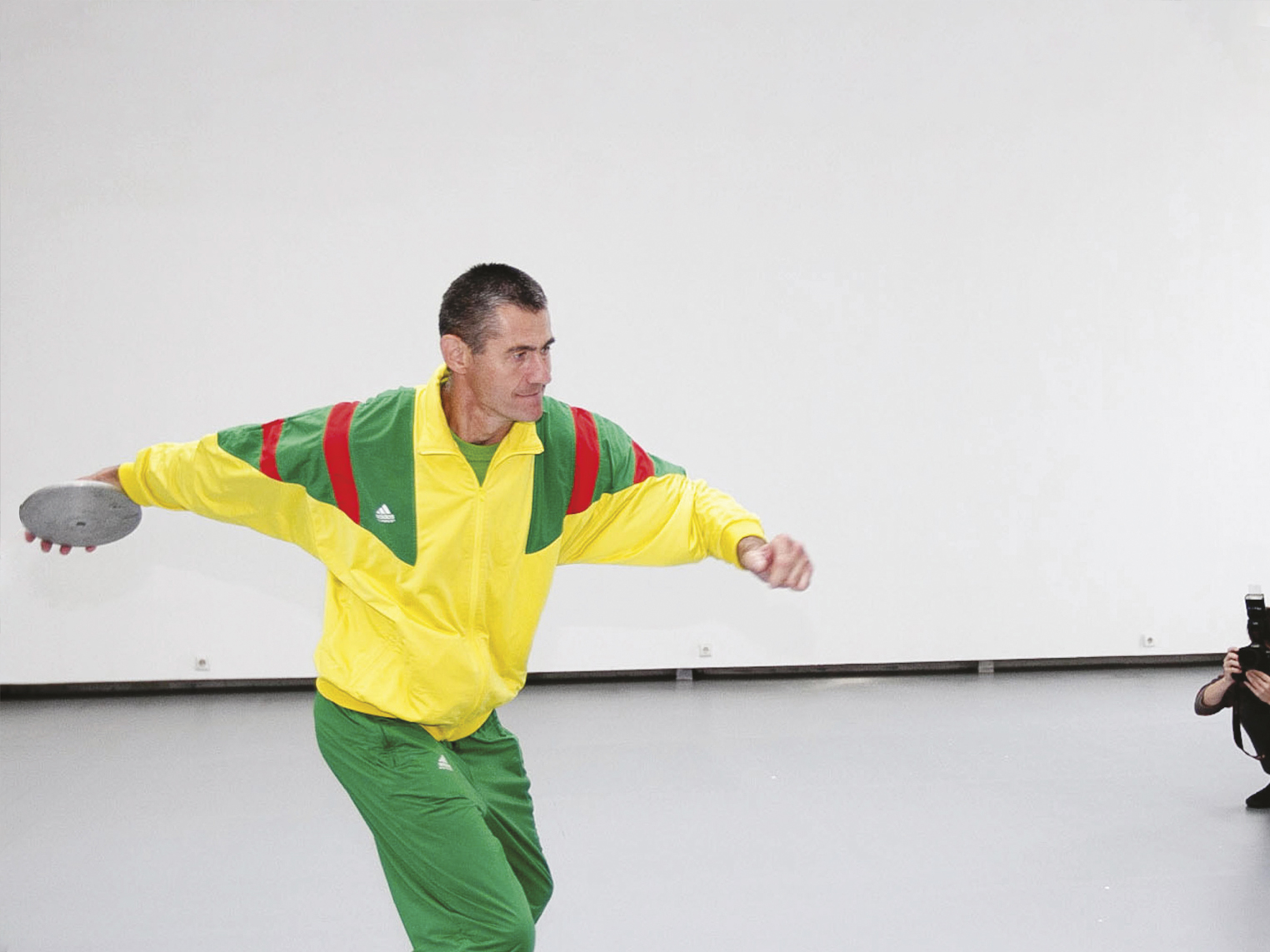 Romas Ubartas – tai dukart olimpinis disko metimo čempionas. Vienąkart laimėjęs medalį Sovietų sąjungai, kitąkart – jau nepriklausomai Lietuvai, 1993 m. Ubartas keletui metų buvo diskvalifikuotas už dopingo vartojimą. 2012 m. Ozarinsko kvietimu keleto fotografų, kuratorių ir autoriaus akivaizdoje Ubartas keliskart sviedžia diską į sieną, kol šis įstringa ir lieka kaboti palubėje. Vėliau šioje vietoje lieka tik disko paliktas rantas (randas).